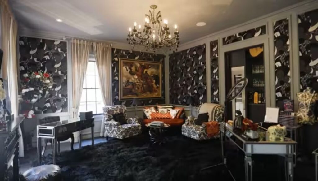 Her favorite room is her custom-designed beauty room. Formerly a bedroom, it’s now adorned in white and cream tones, equipped with two vanities, multiple mirrors, wig heads, and an extensive hair product collection.